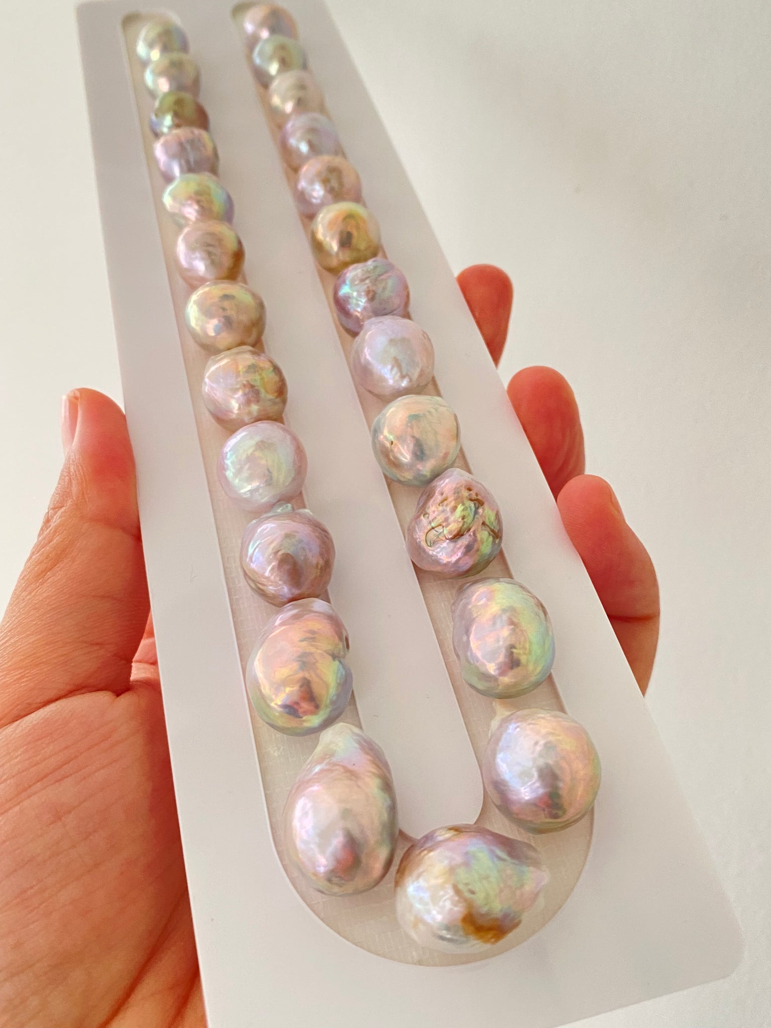 Mirror-finish Baroque pearls with dreamy mermaid iridescence - exceptionally rareMini baroque pearls (10-13mm) + petal...